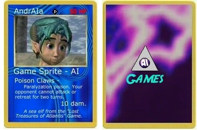 Now here's a perfectly good example of the good that can come of having several different graphics programs around to play with. It's the promo card for a Collectible Card Game that will hopefully never be invented.