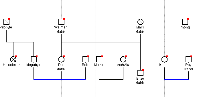 I happen to find genealogy to be a fun hobby, especially when I use Genopro, which is an incredibly kick-ass family tree maker. So after deciding that real people were boring, I put together several different family trees, including one for Jo-Ann Montgomery's universe. However, this one is of the inter-relationships created by Season 4 of Reboot. So, yes, there are spoilers. Click on a name to view details about that person.